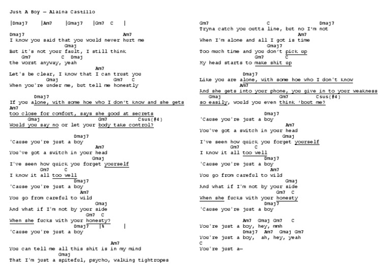 Just A Boy Alaina Castillo Chords Landscape Pdf