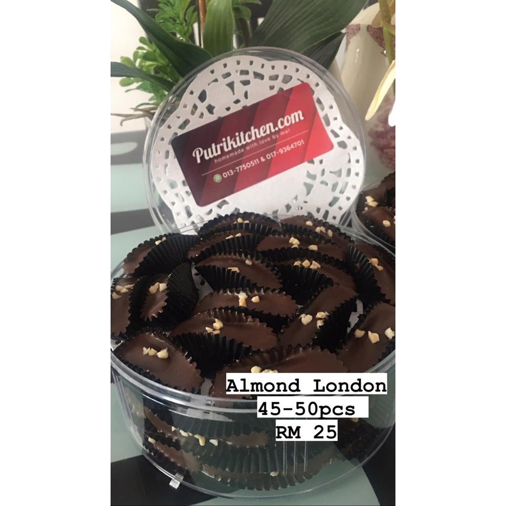 Cara Penyediaan Resepi Biskut Almond London Sedap. 1 sudu teh esen vanilla. Telah mendapat banyak perkongsian Resepi biskut raya almond london Biskut Almond London Bahan-bahan anggaran 140 biji IKLAN 250 gm mentega 9 oz 2 12 cawan tepung gandum 1 oz 12 cawan nestum di kisar halus 3 oz 1 cawan tepung jagung 4 oz 1 cawan gula aising 1 biji kuning telor Badam biji di panggang secukupnya Badam cincang Malah sukatannya juga.